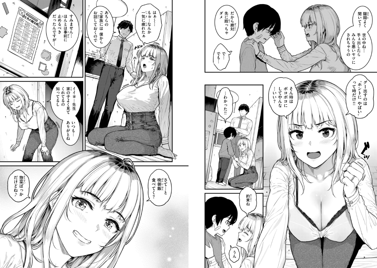 特に「パシリちゃんにお願い」編のような、断れない少女が快楽に流されつつも最後に恋心へ転換する展開は、読後にほんのり切なさと幸福感を残してくれるのが印象的です。一方で「シングルマザーは甘えたい」では、母性あふれるヒロインと教師という背徳的な関係性を描きながらも、主人公が彼女を大切に扱う姿勢が読者の共感を呼んでいました。